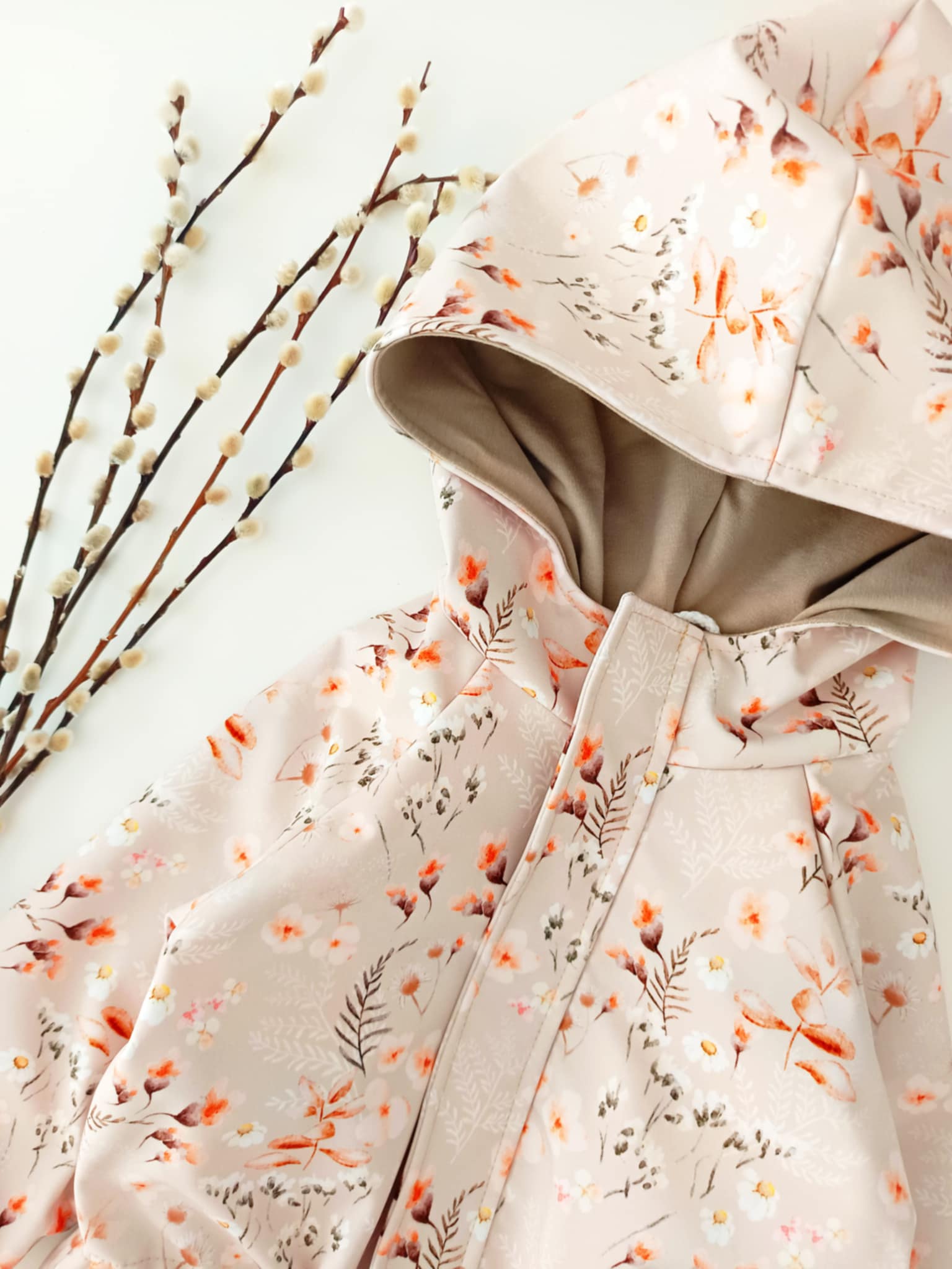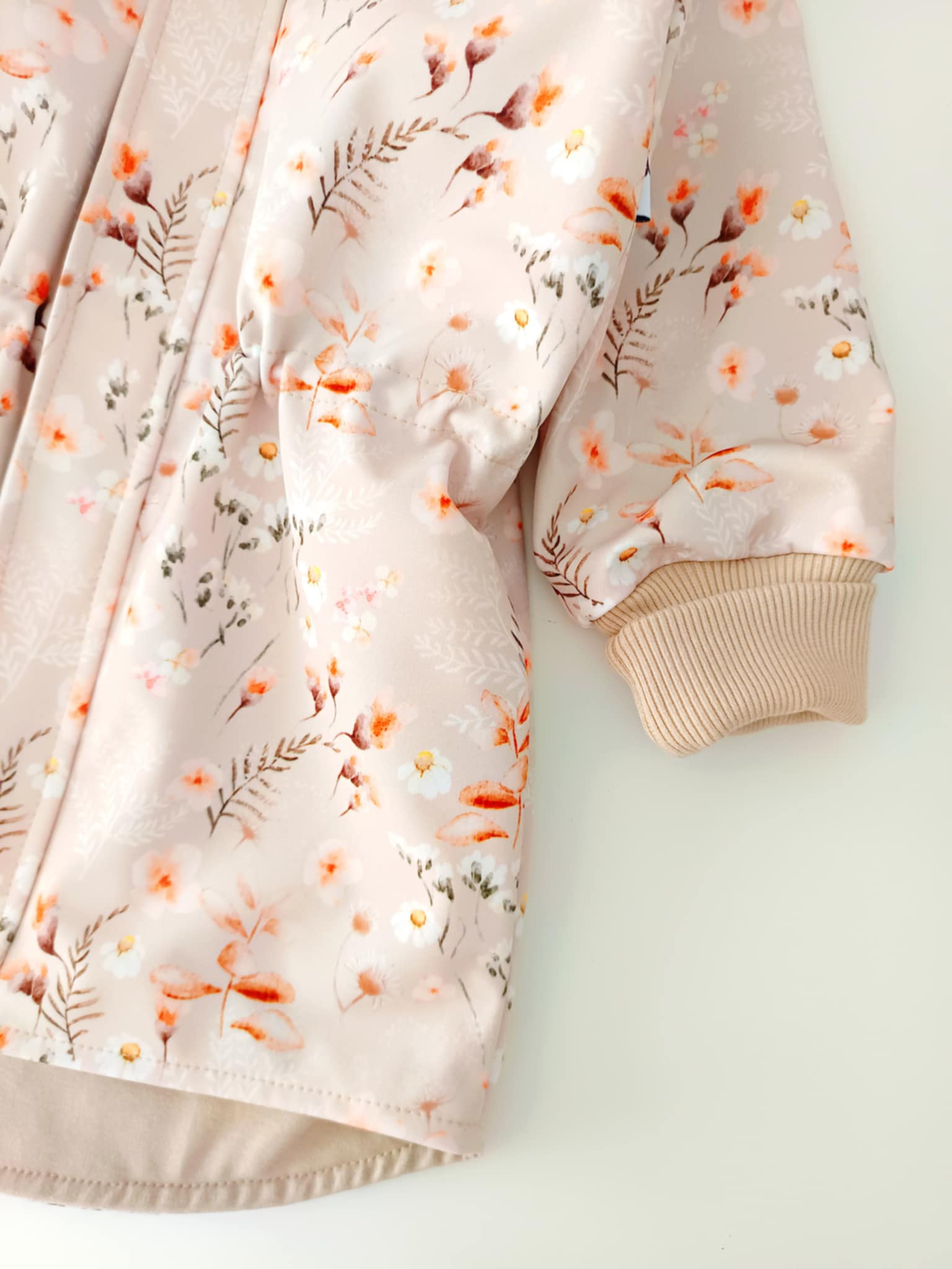Úvod » KOLEKCIA JESEŇ/ZIMA '25 » Prechodná softshell bunda Kvietky na béžovej