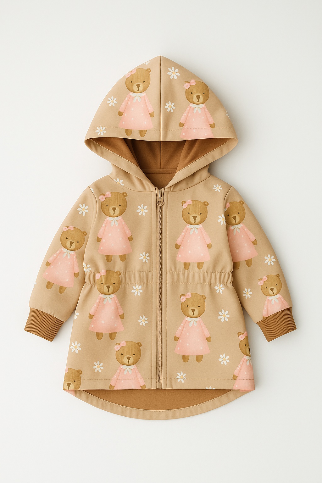 Nepremokavá prechodná bunda podšitá nepočesanou teplákovinou. Vyrábame ju v rastúcich dvojveľkostiach.